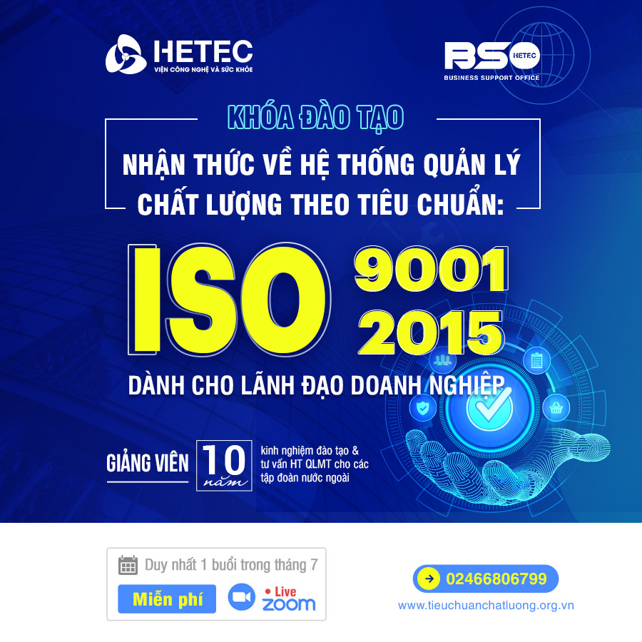 VĂN PHÒNG HỖ TRỢ DOANH NGHIỆP - VIỆN CÔNG NGHỆ VÀ SỨC KHỎE – BSO mở Khóa Đào Tạo Miễn Phí Nhận Thức Về Hệ Thống Quản Lý Chất Lượng Theo Tiêu Chuẩn ISO 9001:2015 Cho Các Lãnh Đạo Doanh Nghiệp. Nhằm giúp các chủ doanh nghiệp kiểm soát được quá trình sản xuất và đảm bảo được chất lượng sản phẩm/dịch vụ ổn định, tiến tới nâng cao chất lượng sản phẩm.