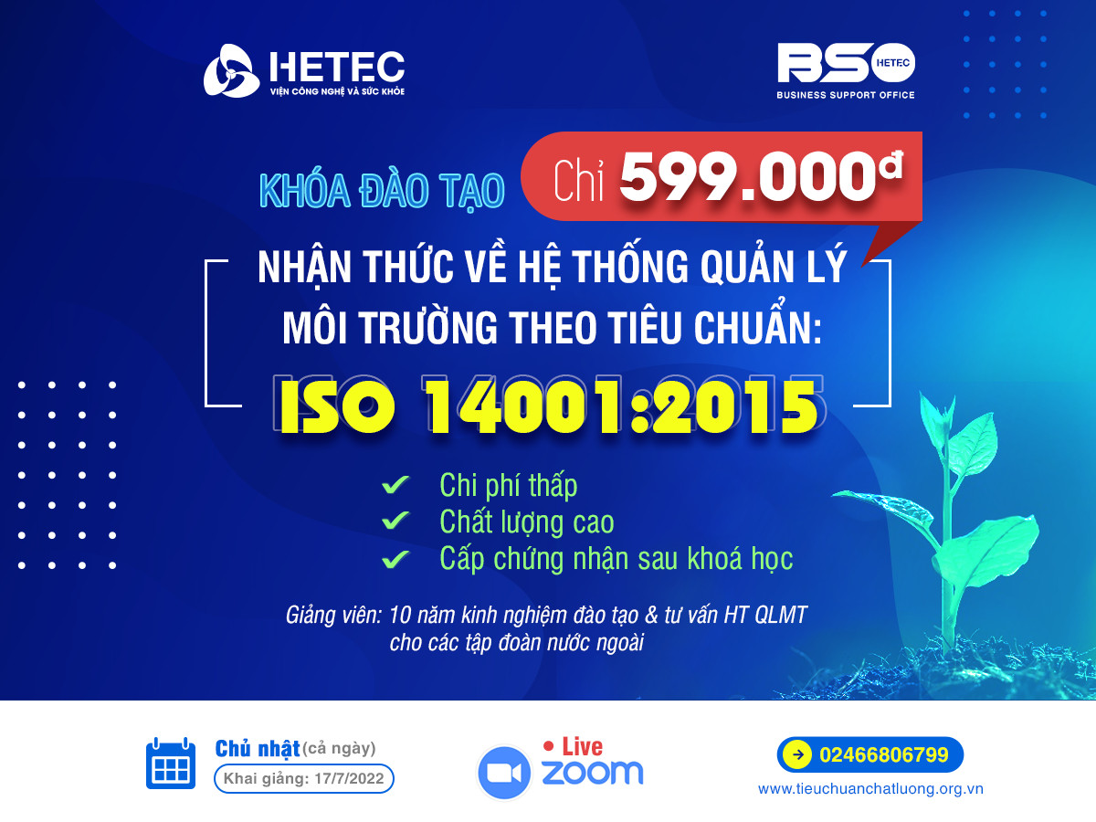 Việc hiểu tiêu chuẩn và biết cách xây dựng hệ thống quản lý môi trường theo ISO 14001:2015 là một trong những nhu cầu cấp thiết hiện nay, giúp nhân viên quản lý môi trường thăng tiến trong sự nghiệp, giúp sinh viên ngành môi trường mới tốt nghiệp tìm được những cơ hội việc làm tốt hơn. Xuất phát từ mong muốn cung cấp khóa đào tạo nhận thức về tiêu chuẩn ISO 14001:2015 với mức giá ƯU ĐÃI nhất – chỉ 599.000đ/1 khóa đào tạo (có cấp chứng nhận), Viện Công nghệ và Sức khỏe tổ chức khóa đào tạo với thông tin cụ thể như sau: